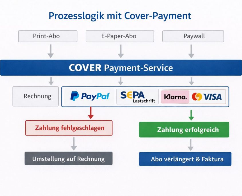 Im digitalen Zeitalter erwarten Abonnentinnen und Abonnenten von Print- und Digitalangeboten ein nahtloses, komfortables Zahlungserlebnis. Wer ein Abonnement per PayPal oder Kreditkarte abschließt, möchte diese Zahlungsart auch für Folgezahlungen nutzen. Genau hier entsteht in vielen Verlagen oft ein Problem: Die Erstzahlung erfolgt digital, während die Verlängerung später per Rechnung abgerechnet wird. Dieses „Medienbruch“-Szenario führt zu Reibungen im Kundenerlebnis, erhöht den administrativen Aufwand und kann zu Kündigungen führen.